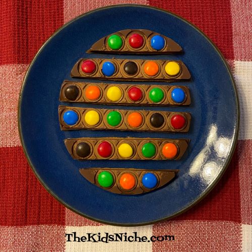 For this project, you will also need some regular size M&M candies and some chocolate. I used the chocolate melting wafers but you could also use chocolate chips and add a bit of coconut oil when melting. But I’m getting ahead of myself! Start by washing the popper and then pushing all “bumps” in the same direction.