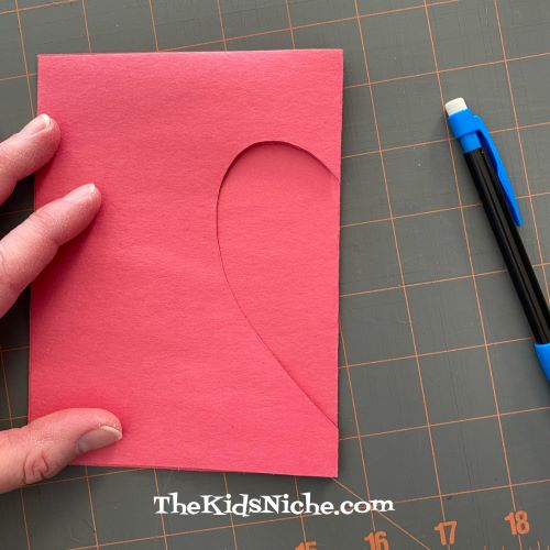 Now, take the half piece of construction paper and fold it in half. Lay the first stencil on top and trace the half of a heart on the fold like you did for the first one.
