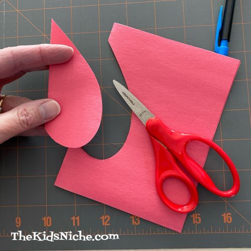 Draw half of a heart shape on the folded edge of your paper. Then cut along the line you drew. When you open it, you will have a heart. π For this project, we will be using the piece with the heart cut out, but you might want to save the heart to use it for something else.