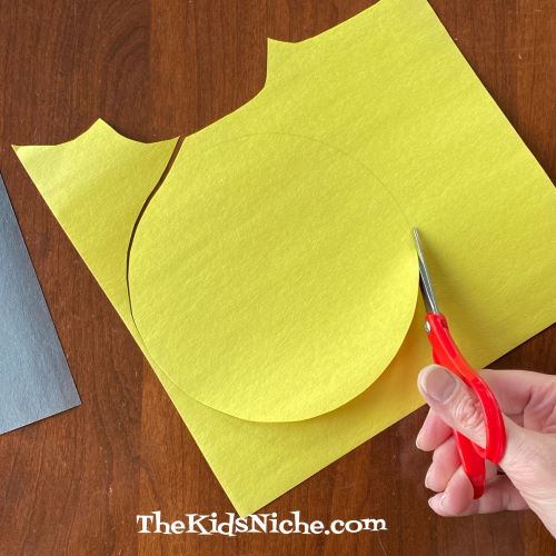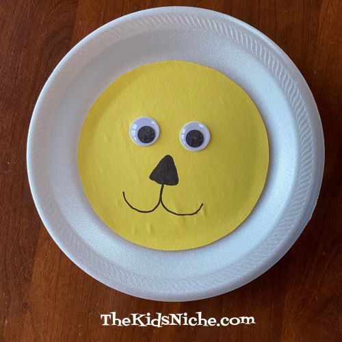 Let’s start with the lion. Draw a circle on yellow construction paper that is approximately the size of the bottom of the plates. You can draw a circle around a bowl, if you have one about the right size. It doesn’t have to be the perfect size, just close will work. π