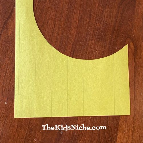 Now cut about 10 strips of yellow construction paper that are approximately 3/4″ wide by 3″ long. They don’t need to be perfect, just around that size.