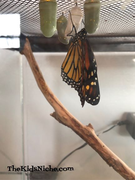 And then we are back to where we started a few posts ago…waiting for the butterflies to emerge from their chrysalis! When they first emerge, their wings are wrinkled like this butterfly.