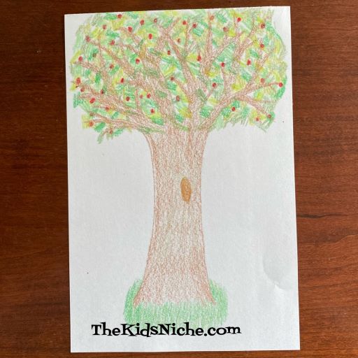 Using a red crayon, you could add some tiny little red circles to your tree for apples. π