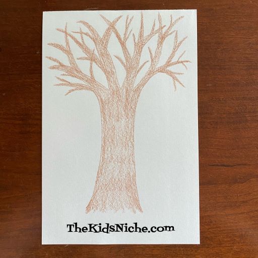 Grab your paper and your brown crayon and here we go! Start by drawing the outline of a tree with a few main branches.