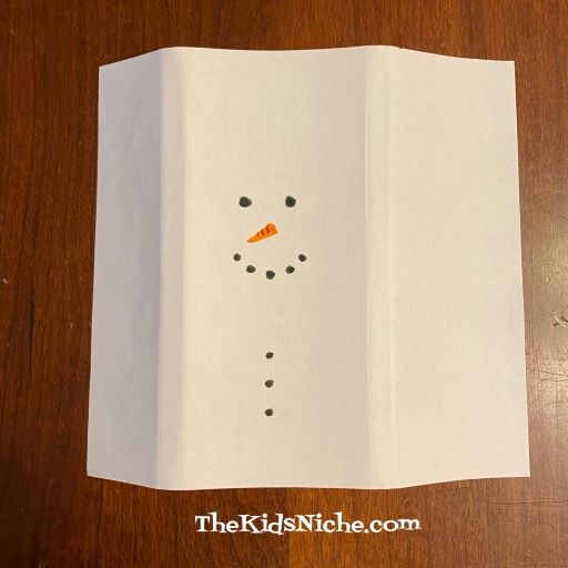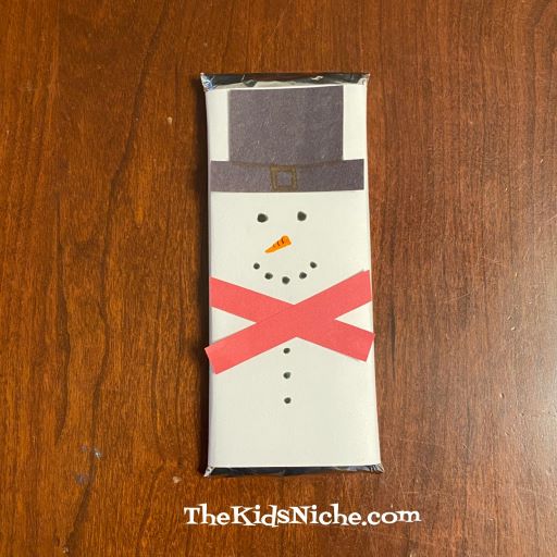 I cut a thin squiggly line from black paper for the snowman’s mouth.