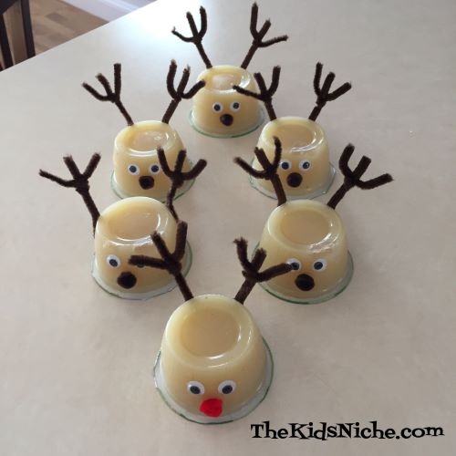 Rudolph, of course! “We can’t forget Rudolph, he’s our leader, you know!” While I didn’t have enough applesauce cups to make ALL the reindeer, here are 6 of them!