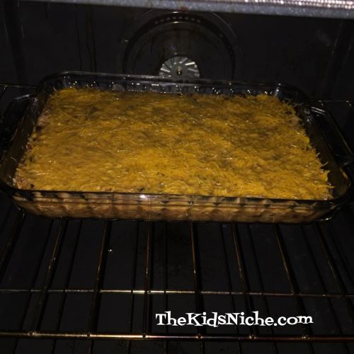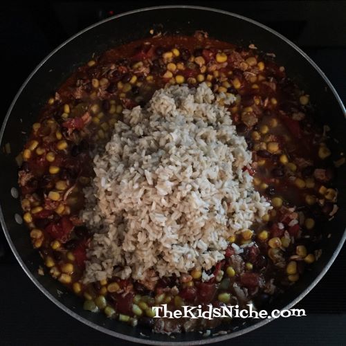 Happy Cinco De Mayo day, everyone! Whether you usually celebrate or not, aren’t Tuesday’s meant for tacos? Today’s post is about having a yummy taco tasting dish but made in a casserole so it’s simple and quick to do. Kids can have fun helping to make this meal. Items needed for Taco Tuesday Casserole are: 2 cups cooked rice, 1 – 14.5 oz can of cooked pork OR 1 pound of hamburger, 1 – 15.25 oz canned corn, 1 – 15 oz can of black beans, 1 – 14.5 oz can of diced tomatoes (we use fire-roasted), 1 – 4 oz can of canned green chiles, 1 package of taco seasoning and 1 – 8 oz bag of grated cheddar cheese. Other optional items would be chips for eating the casserole, sour cream, salsa, lettuce, etc. Whatever items you like with tacos. This recipe is very versatile, so feel free to change it up. Grease a 9″ x 13″ pan and turn your oven on to 350 degrees.