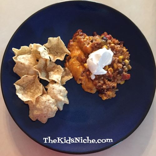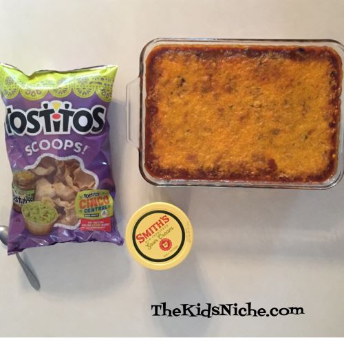 This time around we just had Tostitos Scoops chips and sour cream with the casserole.