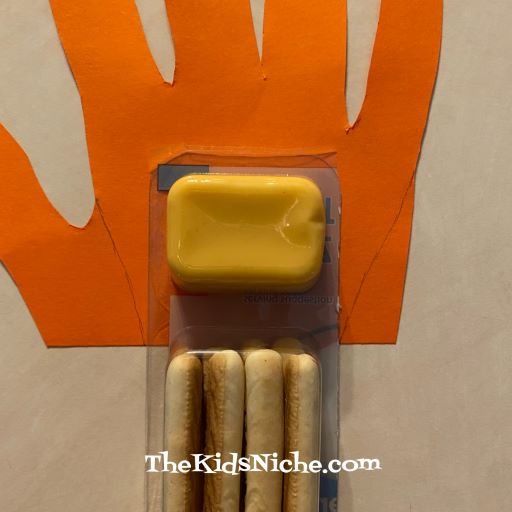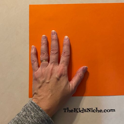 I probably should have turned my paper the other direction since my hand is rather big and there isn’t much room for his legs and feet. But maybe this guy is just short! haha! The fingers of the hand will serve as the turkey’s feathers, so go ahead and color them whatever color you like.