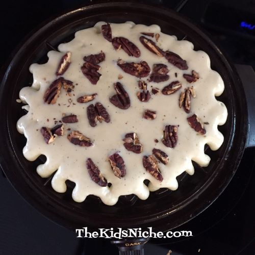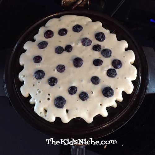When the waffle iron is hot, spoon some batter onto the waffle iron and close the lid. Make sure not to overfill the waffle iron or the batter will run out.